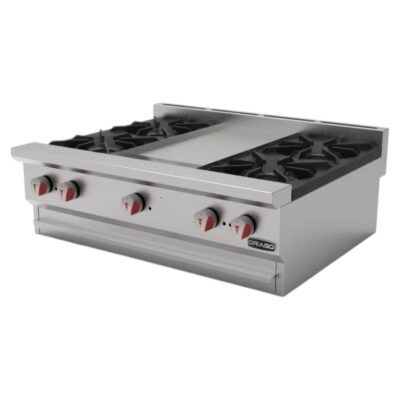 Estufa de Mesa 4 Quemadores, Asador 1 Pie, Plancha 1 Pie, Freidor y Gratinador UNIVERSAL UDM Drago