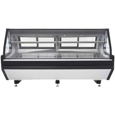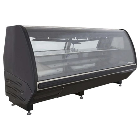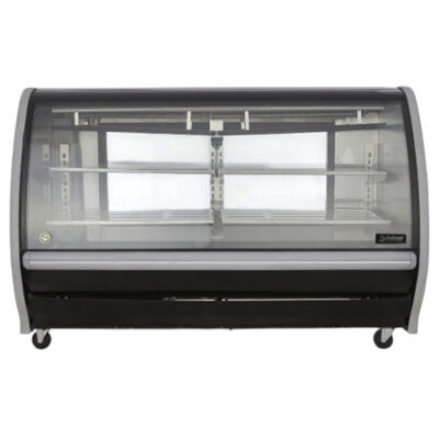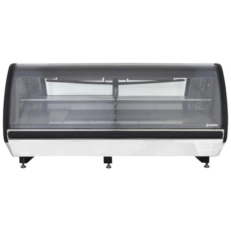 Cuenta con 2 niveles de exhibición: 2 charolas telescópicas en acero inoxidable en el nivel superior y piso en acero inoxidable en el nivel inferior.